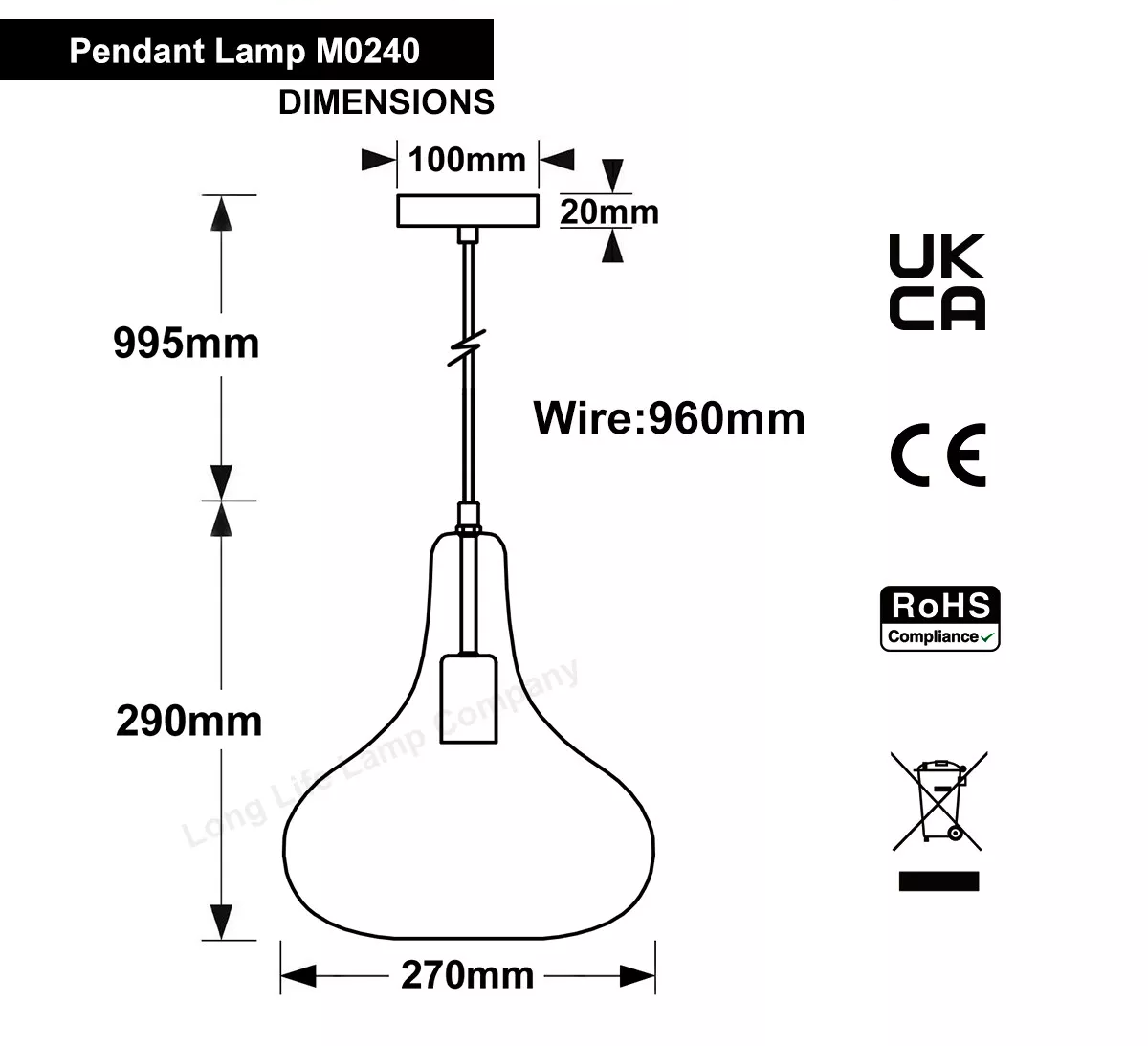 Requires 1 ES/E27 bulb max 60w (not included)