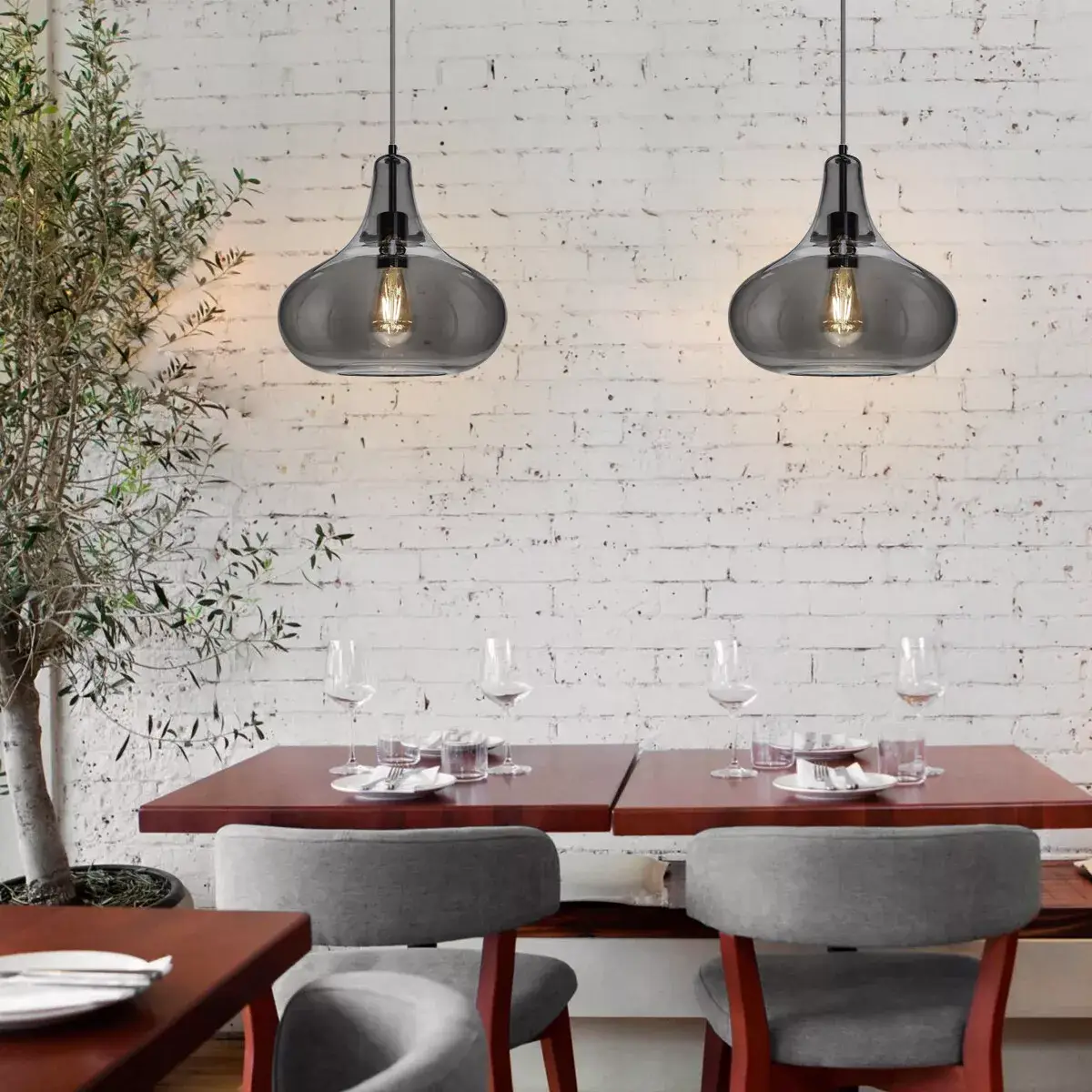 Bring a touch of timeless elegance to your space with this Vintage Teardrop Glass Pendant Light. Designed with a smoked grey glass shade and polished chrome detailing, this stylish fixture is perfect for kitchens, dining rooms, bars, restaurants, and hotels.